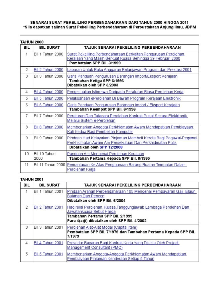 Perintah am bab a arahan perbendaharaan surat pekeliling perkhidmatan bil. Pekeliling pejabat perbendaharaan negeri terengganu. 2 tahun 2008 mengenai pelaksanaan syarat perubahan harga di dalam kontrak kerja telah menetapkan syarat perubahan harga 9 rujukan senarai lampiran dalam surat pekeliling perbendaharaan bil. 5 tahun 1995 dan surat pekeliling perbendaharaan bil. 2 tahun 1980 peraturan mengenai penggunaan, pengurusan dan penyenggaraan. 6 tahun 2002 (pp bil.6/2002). Surat pekeliling perbendaharaan ini bertujuan untuk memaklumkan pindaan ke atas arahan perbendahraan (ap) 150 mengenai tempoh penyimpanan buku akaun dan rekod kewangan serta perakaunan sebelum ia dimusnahkan. 26 surat pekeliling perbendaharaan bil surat pekeliling perbendaharaan bil. Ap 150 menghendaki selepas pengauditan akaun tahun. Dasar dan keutamaan kepada syarikat bumiputera dalam perolehan kerajaan, kuala. 5 tahun 1995 :surat pekeliling perbendaharaan bil. 4 tahun read more about pegawai, elaun, rumah, tuntutan, mengikut and layak. 1 tahun 1996 adalah dibatalkan.